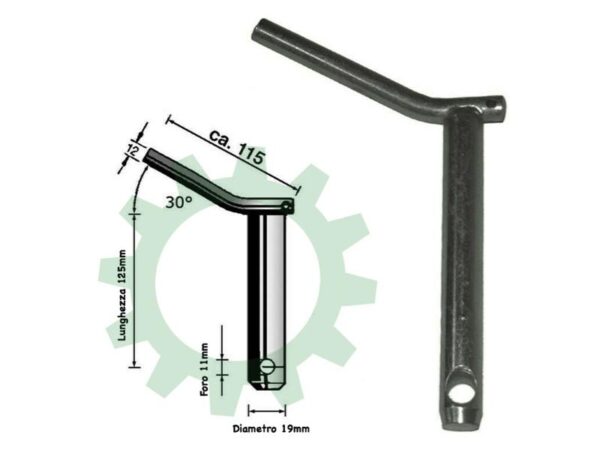 Perno per terzo punto trattore con maniglia misure 19X125mm.